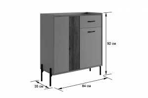 С другой стороны комод оборудован выкатным ящиком, который обеспечивает легкий доступ к часто используемым предметам. Под ним расположен большой глухой фасад, скрывающий за собой просторное хранилище для более крупных вещей.
