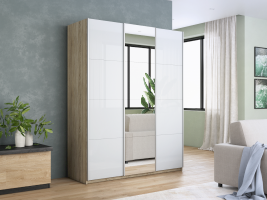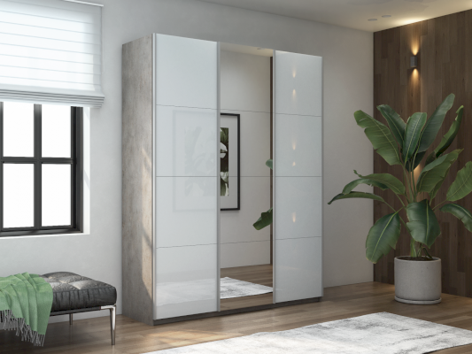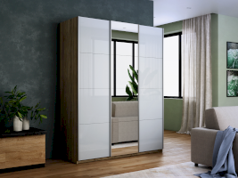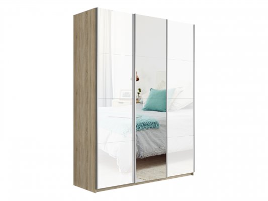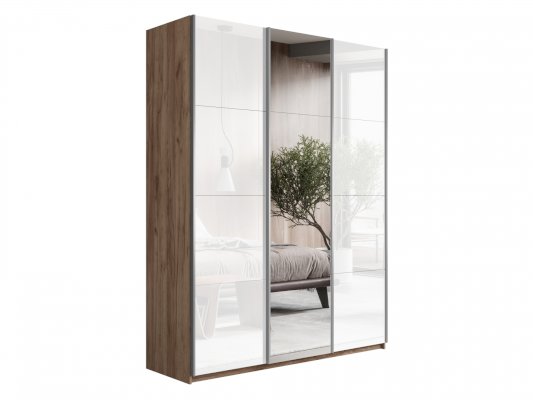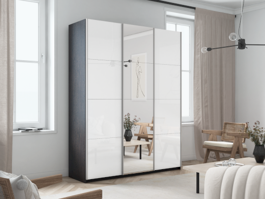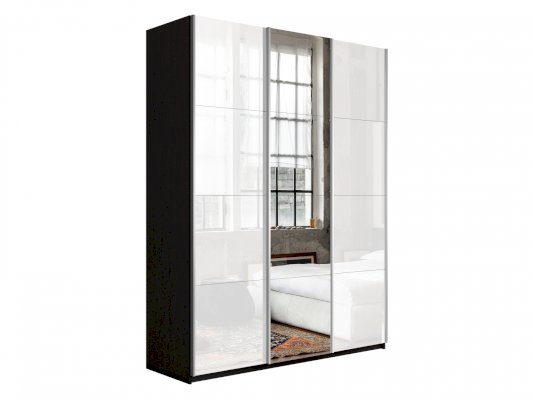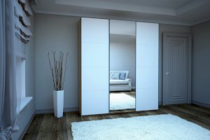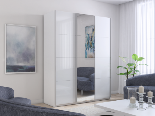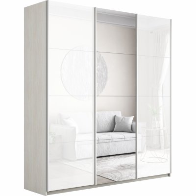 Шкаф-купе 3-х дверный Прайм Белое стекло/Зеркало/Белое стекло (Е1)